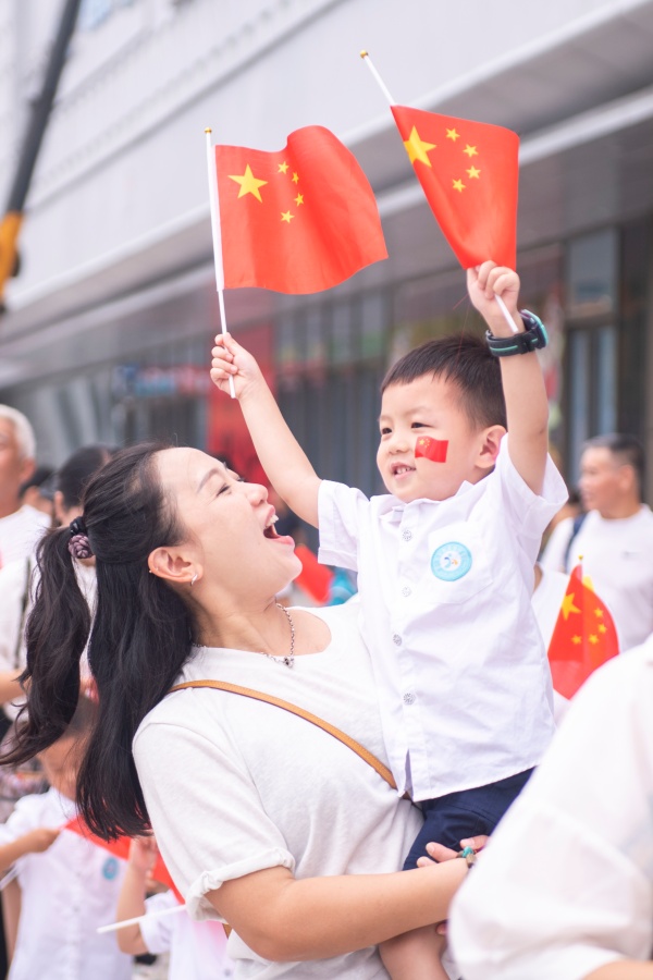 9月30日,娄底市娄星区格林幼儿园开展庆祝活动,小朋友们挥舞五星红旗,祝福祖国,迎接国庆、中秋双节的到来。吴永华 摄(湖南图片库)