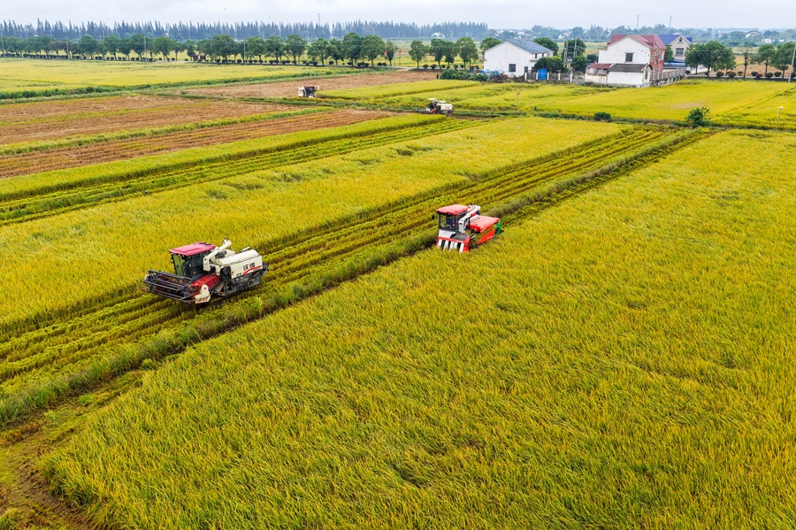 10月20日,位于洞庭湖畔的岳阳市屈原管理区凤凰乡河泊潭村,数十台农机协同作战,完成稻谷收割、秸秆处理、土地翻耕和绿肥种植等全流程作业,田间地头一派繁忙的秋收景象。宋政军 摄