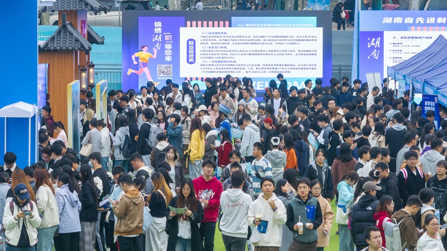 10月25日,“智汇潇湘 才聚湖南”专场招聘武汉站在武汉大学举行。前来对接的青年人才摩肩接踵。湖南日报全媒体 记者辜鹏博 傅聪 易昂 摄影报道