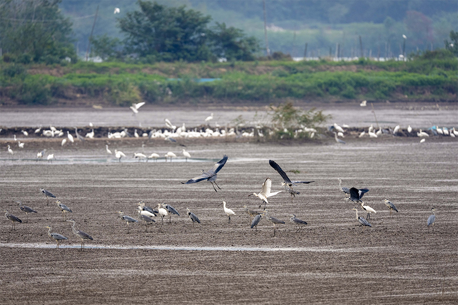 10月27日,一群候鸟在岳阳市云溪区白泥湖国家湿地公园觅食、嬉戏。这里是东洞庭湖鸟类迁徙廊道上的重要驿站,深秋季节,众多候鸟在此悠然栖息,绘就了一幅人与自然和谐共生的美丽画卷。 陈上柏 摄(湖南图片库)