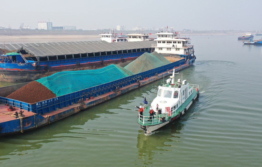 12月9日,长沙市交通运输执法人员在湘江望城段水域开展安检巡航。受冬季枯水期影响,湘江长沙段水位持续走低。长沙市交通运输执法部门全力开展抗枯保畅工作,通过日常安检巡航、临时通航管制、快速处置搁浅险情、严管超吃水船舶等举措,筑牢枯水期通航保障防线。湖南日报全媒体记者 田超 通讯员 肖雅欣 陈果 摄影报道