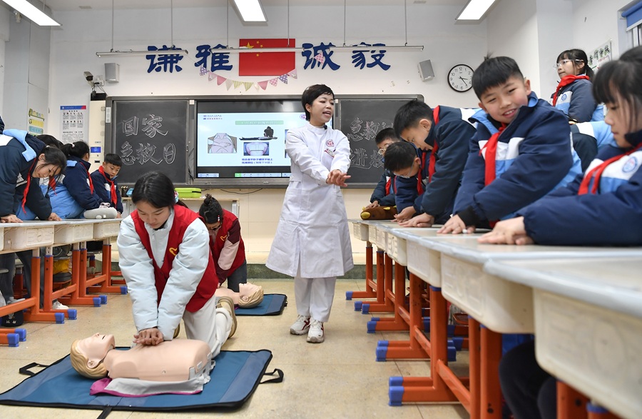 1月20日,国家急救日,由徐芙蓉党代表工作室发起并主办的“党代表工作室百场急救科普公益活动”第41场在长沙周南梅溪湖小学举行。活动以互动体验、直观示范、通俗讲解的方式,为师生们传授了心肺复苏(CPR)、AED使用、气道异物梗阻解除等关键急救技能。湖南日报全媒体记者 童迪 摄
