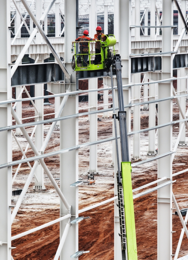 1月19日,嘉禾高新区湖南金松汽车有限公司二期项目现场,工人在进行钢结构搭建作业。连日来,该高新区内各重点项目加紧施工,力争实现早建成、早投产。黄春涛 摄(湖南图片库)
