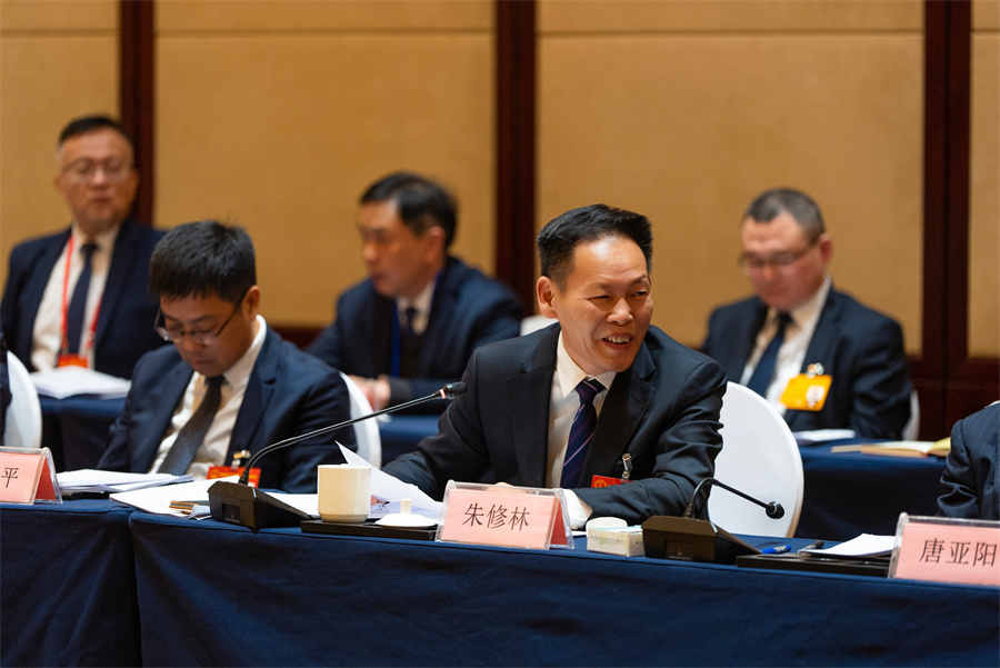 2月3日下午,湘潭市代表团朱修林代表就加快推进长株潭一体化建言。湖南日报全媒体记者 傅聪 摄