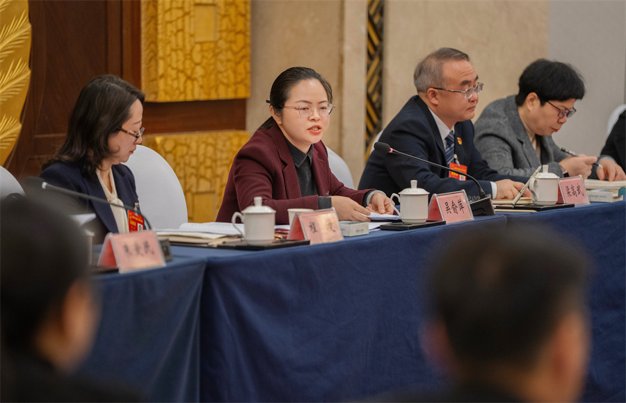 2月3日下午,怀化市代表团杨婧代表围绕优化营商环境、助力湖南商品走向海外市场建言。湖南日报全媒体记者 赵持 摄