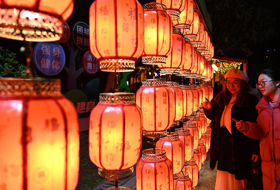 2月11日晚,市民在欣赏花灯。当天,城步苗族自治县“苗乡纳福·马跃新春”春节活动在南湖公园启动,七大主题活动为市民呈现为期20天的文化盛宴。严钦龙 摄