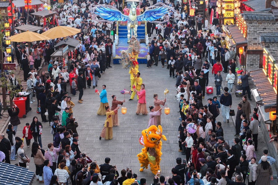 2月14日,演职人员在衡山县衡山渡进行民俗、非遗大巡游。春节前夕,该县举行丰富多彩的民俗和非遗展演,让市民游客沉浸式体验传统年味,喜迎新春佳节。曹正平 夏建军 摄影报道(湖南图片库)