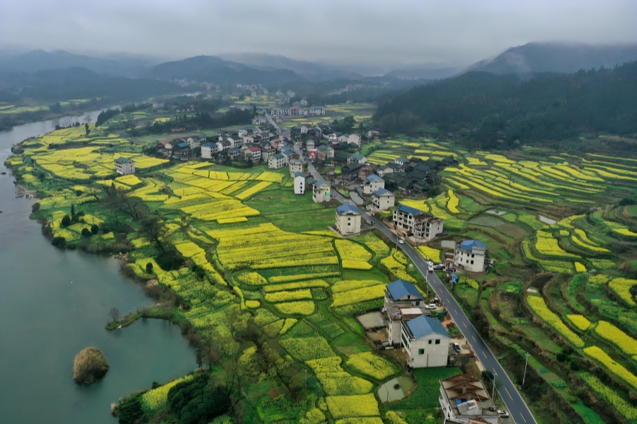 2月26日,通道侗族自治县县溪镇老湾村,成片的油菜花迎春绽放。近年来,该县依托自然资源优势,推动“农业+旅游”融合发展,通过发展油菜花观光带动乡村旅游,助力农民增收。刘强 李路铭 摄影报道(湖南图片库)