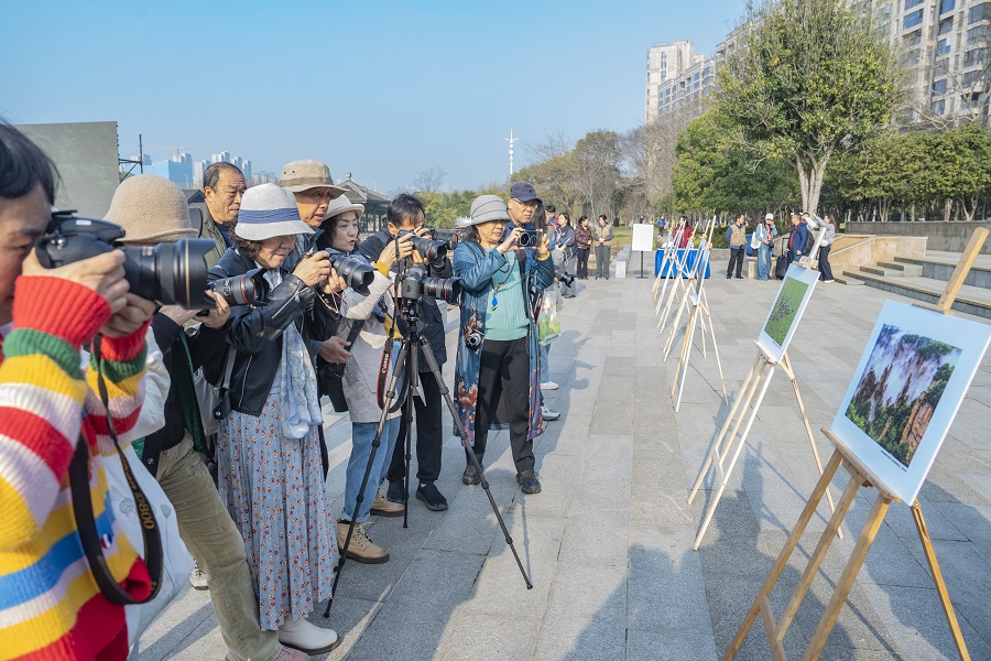 3月12日,摄影爱好者在拍摄“湖南真美”生态影像展。湖南日报全媒体记者 李健 摄