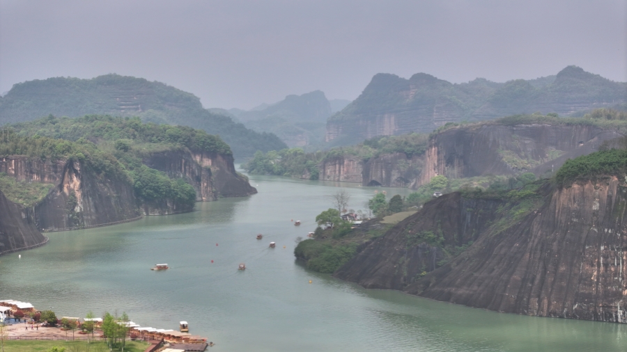4月1日,郴州市苏仙区飞天山旅游区九龙水寨,游客乘坐竹筏游览翠江。时下,该景区迎来春游热潮,游客乘竹筏穿行于山水之间,乐享春日美景。黄建华 摄(湖南图片库)