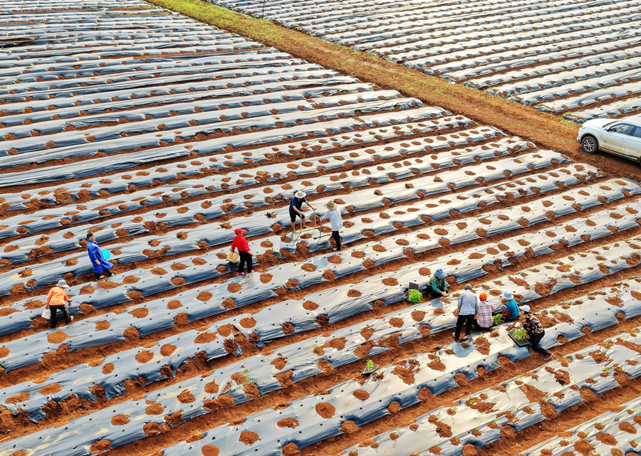 4月9日,嘉禾县龙潭镇龙旺村,农民在蔬菜基地移栽辣椒苗。近年来,该镇着力调整农业产业结构,发展高效蔬菜产业,通过“合作社+农户+种植采收+加工销售”订单种植模式,促进农业增效、农民增收。黄春涛 摄(湖南图片库)