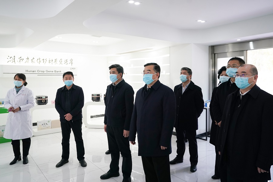 2月25日下午,省委书记、省人大常委会主任张庆伟来到省农科院、袁隆平农业高科技股份有限公司、华智生物技术有限公司,调研农业科技、种质资源保护等工作。他强调,要深入学习贯彻党的十九届六中全会精神和习近平总书记对湖南重要讲话重要指示批示精神,立足科技自立自强,扛稳粮食安全重任,全面实施种业振兴行动,牢牢守住保障国家粮食安全底线,为推动农业高质量发展作出更大贡献。省委副书记朱国贤参加调研。