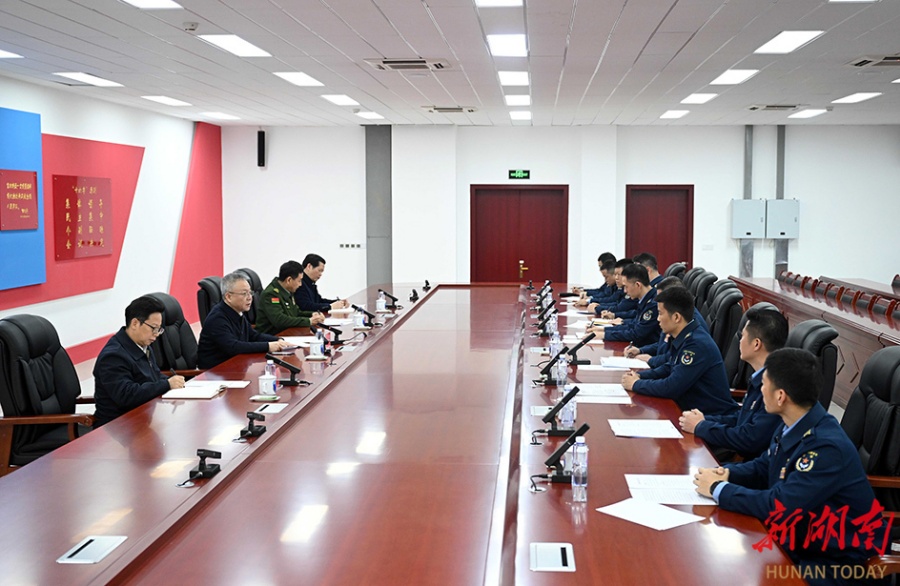 沈晓明来到空军驻湘某部,与官兵代表座谈交流,感谢部队官兵为促进湖南经济社会高质量发展作出的贡献。希望部队全体官兵坚持以习近平强军思想为指导,深入贯彻新时代军事战略方针,聚焦备战打仗,苦练打赢本领,努力为党和人民再立新功。同时,希望部队积极参与和支持湖南经济社会发展,在推动对口帮扶、应急救援等方面展现更大担当作为。省委、省政府将一如既往支持驻湘部队的建设和发展,用心用情解决好广大官兵的“后路、后院、后代”问题,持续巩固发展军政军民团结的良好局面。