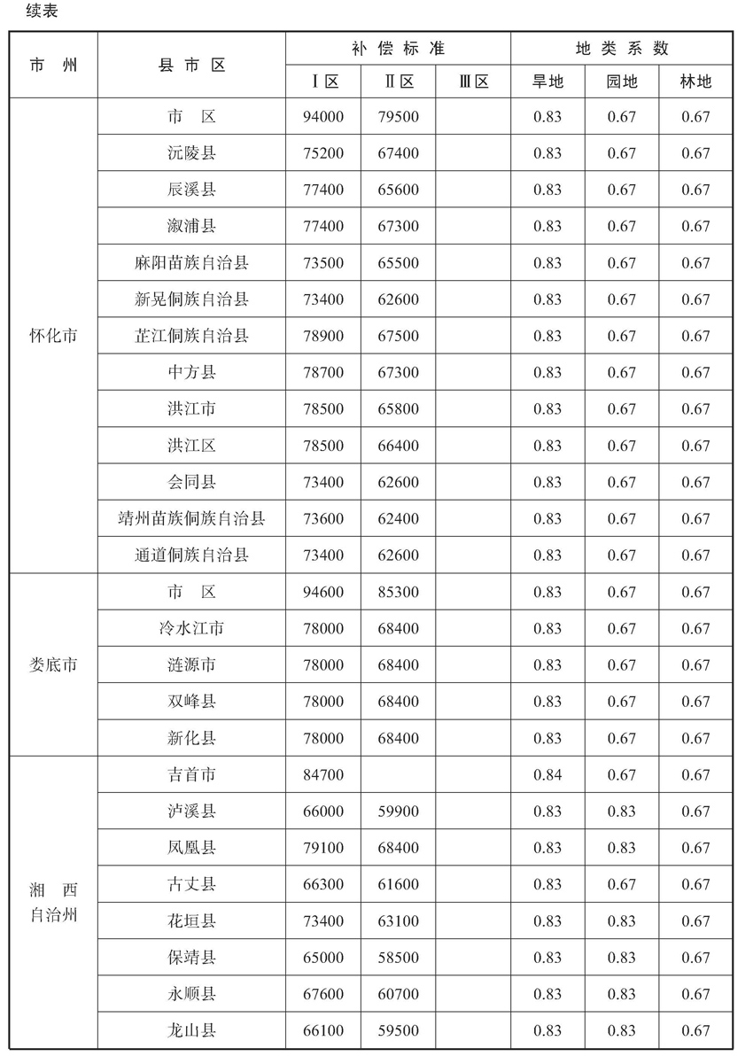 四、市州人民政府可以根据当地实际制定具体实施细则,作出相应调整,但是不得低于本通知确定的补偿标准和地类系数。