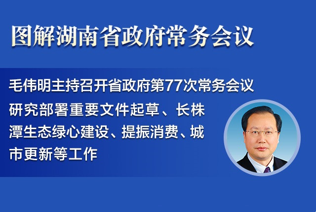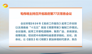12月1日下午,省长毛伟明主持召开省政府第77次常务会议,传达学习习近平总书记近期重要讲话和指示批示精神,研究部署依法治省、2026年《政府工作报告》和省“十五五”规划《纲要草案》等重要文件起草、推进乡村全面振兴、长株潭生态绿心“多规合一”、提振消费、城市更...[详细内容]