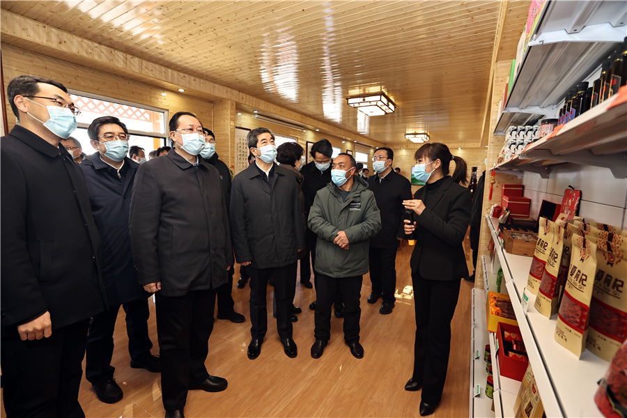 2月19日下午,陈润儿、毛伟明、咸辉一行在宁夏吴忠市红寺堡区弘德村考察全国易地搬迁移民致富示范区创建情况,并走进村民刘克瑞家中了解收入和生活情况。
