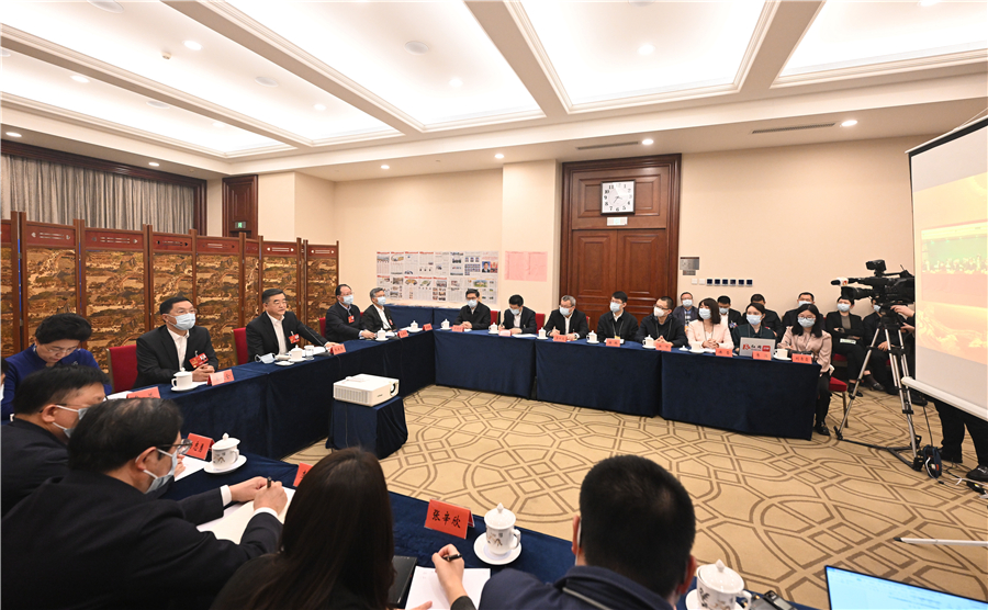 3月12日,全国人大常委会副委员长、十四届全国人大一次会议湖南代表团团长张庆伟看望慰问我省全国两会报道新闻工作者。湖南日报全媒体记者 唐俊 摄