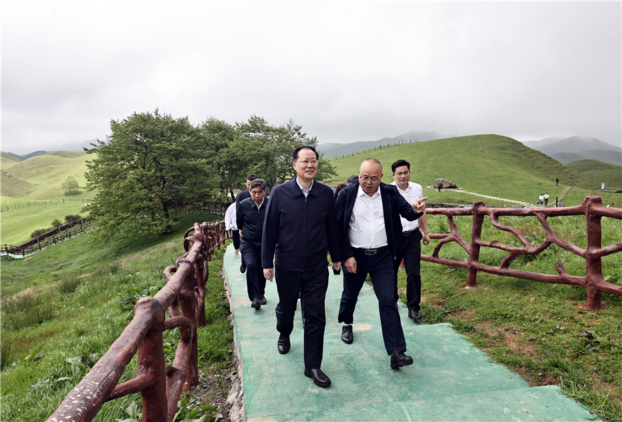 5月16日下午,毛伟明在城步苗族自治县南山国家公园调研。