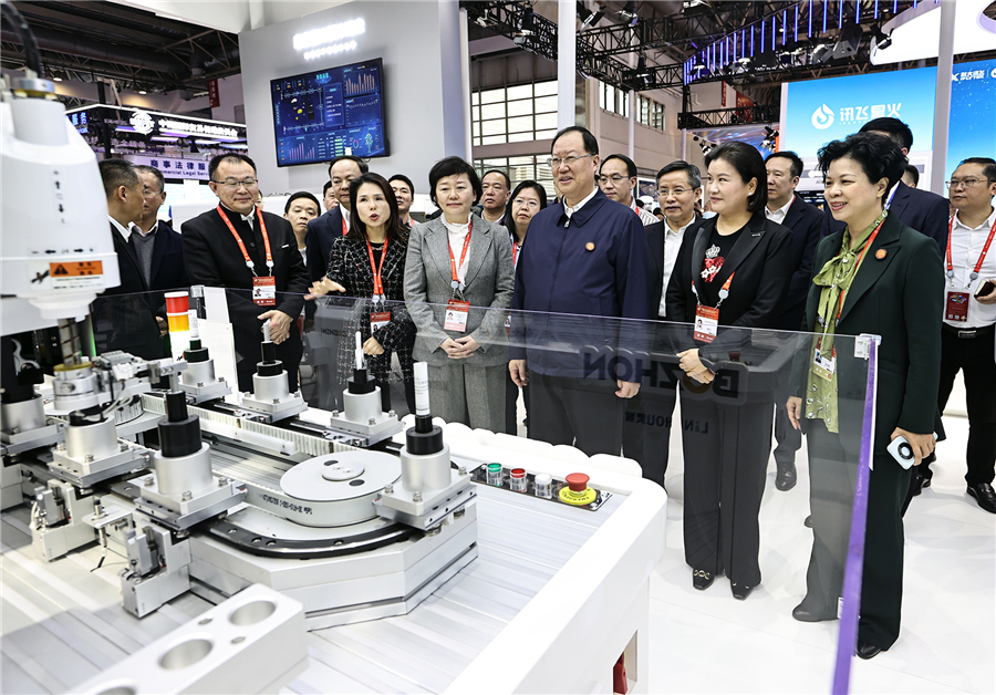 走进数字科技链展区,毛伟明在英特尔、中兴通讯、三一重工、苹果等展位,详细了解科技创新和产业融合发展最新成果,并诚邀各大企业积极参与湖南“智赋万企”行动,为企业特别是中小企业“智改数转”提供更多个性化技术产品、解决方案,不断提升全省企业高端化、智能化、绿色化水平。
