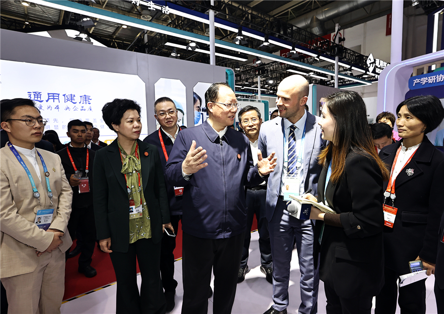 中信农业(隆平高科)、中联重科等企业在绿色农业链展区精彩亮相,展示“湘”字号种业创新、智慧农机的闪亮名片。毛伟明勉励企业继续加大关键核心技术攻关和成果转化,全力打造种业创新高地和智慧智能农机产业链发展高地。在健康生活链展区的诺和诺德展位,毛伟明欢迎企业来湖南投资布局,让更多生物医药领域的尖端、高端技术在湘落地,共同培育湖南大健康产业,增进群众健康福祉。