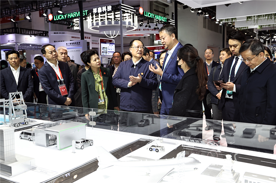 来到智能汽车链展区,毛伟明一行参观了宁德时代、特斯拉、希迪智驾、中车智驭、裕能新能源等企业展位。他说,近年来,湖南加快培育壮大新能源汽车产业,在电池材料、电控电机、整车制造、智能网联等领域培育集聚了一批上下游企业,全省新能源汽车年产量向100万辆冲刺。希望大家前去考察湖南、投资湖南、发展湖南,为湖南高质量发展增添新动能。