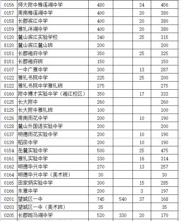 2、查看长沙市教育局下发的学校招生计划表,获取各学校的招生人数;