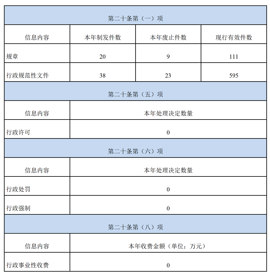 本报告按照《国务院办公厅政府信息与政务公开办公室关于印发〈中华人民共和国政府信息公开工作年度报告格式〉的通知》(国办公开办函〔2021〕30号)要求编制,由总体情况、主动公开政府信息情况、收到和处理政府信息公开申请情况、因政府信息公开工作被申请行政复议提起行政诉讼情况、存在的主要问题及改进情况、其他需要报告的事项六个部分组成。
