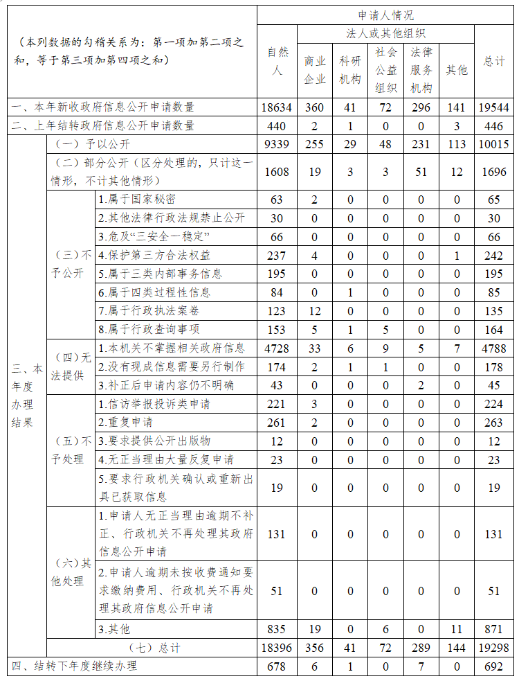 (二)依申请公开情况。畅通依申请公开受理渠道,建立完善“湖南省政府信息依申请公开办理平台”,为申请人依法申请获取政府信息提供便利。指导各级各部门进一步规范办理政府信息公开申请,严格执行政府信息公开申请接收、登记、审查、办理、答复、送达、归档等要求,不断强化服务意识,提高办理质效。印发《关于做好省人民政府批准建设用地批准文件信息依申请公开答复工作的通知》,进一步规范有关征地审批信息依申请公开办理答复的主体和程序。2024年全省共收到依申请公开件19544件,上年度结转办理件446件,共办理完成19298件,结转下年度继续办理692件。其中,省政府和省政府办公厅2024年共收到政府信息公开申请672件,结转上年度政府信息公开申请1件,共办理完成625件,结转下年度继续办理31件;发生行政复议10件、行政诉讼1件。