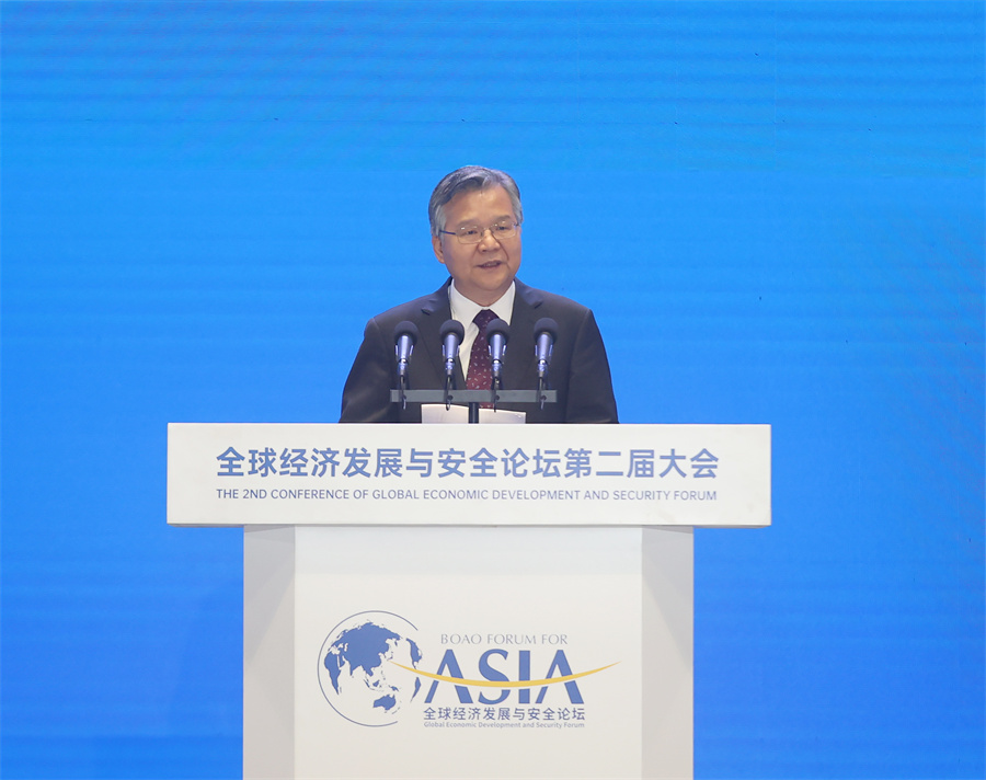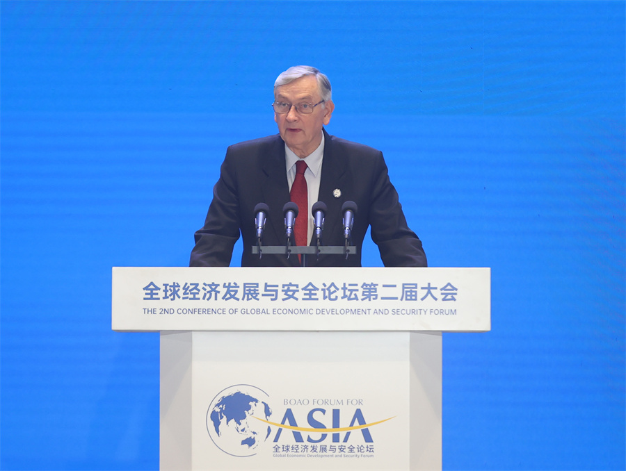 博鳌亚洲论坛全球经济发展与安全论坛大会荣誉主席、斯洛文尼亚前总统图尔克致辞。