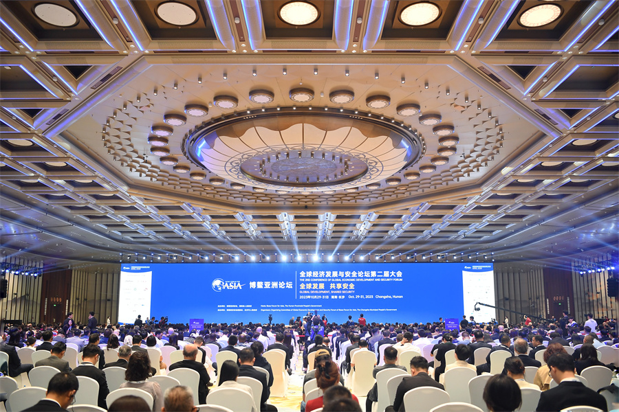 10月30日上午,博鳌亚洲论坛全球经济发展与安全论坛第二届大会开幕式暨全体大会在长沙举行。