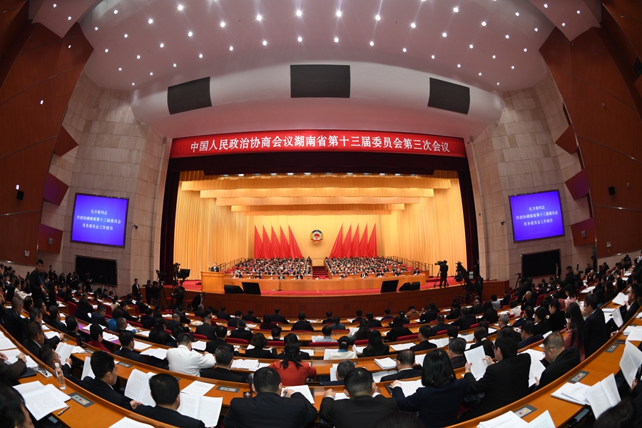 1月13日上午,中国人民政治协商会议湖南省第十三届委员会第三次会议在省人民会堂开幕。