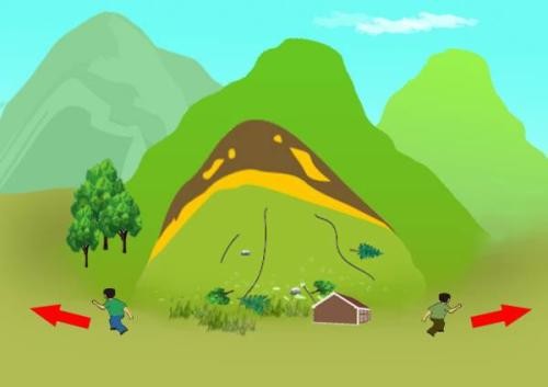 2、发现泥石流袭来时,要马上向沟岸两侧高处跑,千万不要顺沟方向往上游或下游跑。