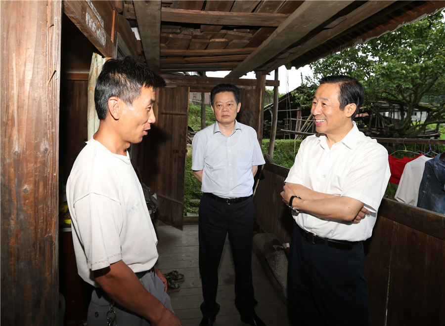 来到万佛山镇五一村,走上贫困户吴必周家的二层小木楼,许达哲关切地询问他的收入水平和享受的帮扶政策。吴必周告诉许达哲,这几年通过务工和参加村里的产业帮扶项目,收入有了大的提升,用水、用电、看病、读书这些都有了保障。