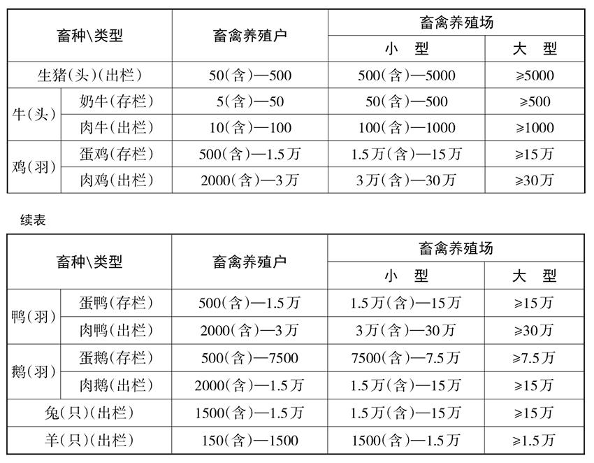 第三条 单一畜种畜禽养殖规模的划分标准如下: