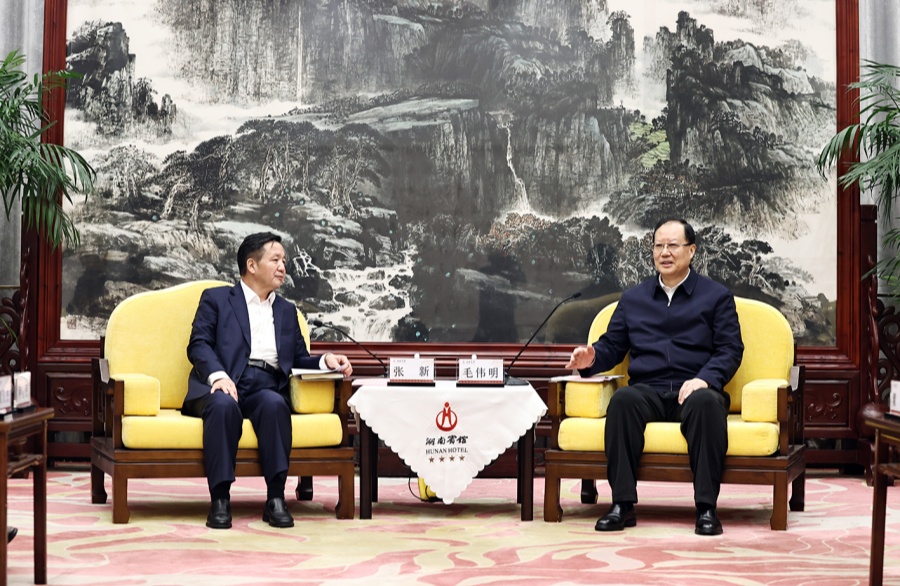 毛伟明对特变电工长期以来给予湖南的大力支持表示感谢。他说,近年来,湖南聚焦解决能源“够不够”“绿不绿”“优不优”,加快建设具有湖南特色的新型电力系统,能源转型加速推进,电网发展跨越升级,体制机制改革全面深化。“十四五”期间,全省能源供应由“硬缺口”转为“紧平衡”,高峰时期实现正常生产生活“无感”用电,并从电网末端转向区域电力交换枢纽中心,衡长株潭特高压输变电装备产业集群入选国家先进制造业集群。毛伟明表示,湖南与特变电工在高质量发展道路上始终同频共振,双方在保障能源安全、产业转型升级、人才培养引进等领域合作成果丰硕。希望特变电工一如既往将湖南作为重要战略布局区域,“十五五”期间加大在湘投入和产业布局,深度参与湖南重大能源项目,协同攻关关键核心技术,共促产教融合育人,共同做大做优做强电工装备产业集群,为加快建设能源强国贡献更大力量。