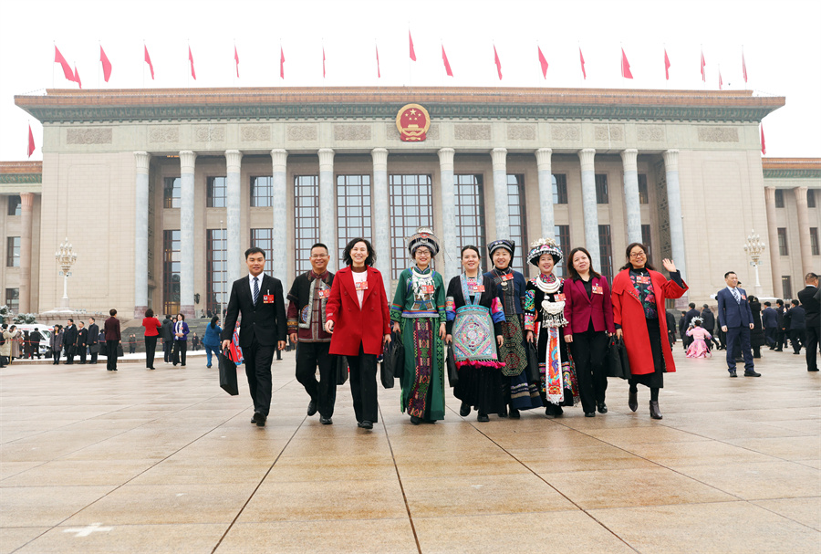 3月5日上午,十四届全国人大四次会议在人民大会堂开幕。开幕会后,湖南代表团代表走出会场。