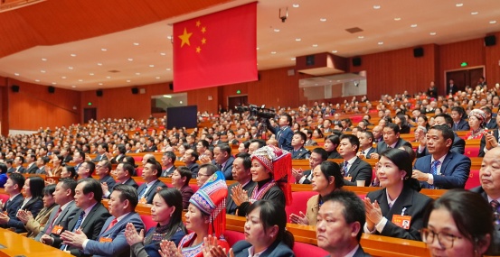 2月3日,湖南省第十四届人民代表大会第四次会议在省人民会堂开幕。省长毛伟明作政府工作报告。湖南日报全媒体记者 刘尚文 摄