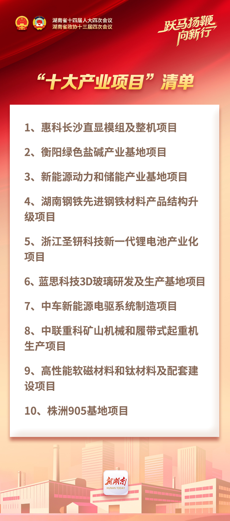 2026年湖南将推动强链壮群。聚焦“4×4”现代化产业体系,壮大13条重点产业链和“5+5”先进制造业集群,稳步提高先进制造业占制造业比重。推动现代石化等传统产业转型升级,促进工程机械等优势产业锻长补短,提升新能源、音视频、航空航天及北斗、智能衡器计量等新兴产业规模能级,构筑具身智能、量子科技等未来产业先发优势。推进长沙宁乡圣钘科技新一代锂电池、浏阳蓝思科技3D玻璃研发生产、株洲中车新能源电驱系统制造、湘潭中联矿山机械装备、郴州新能源动力和储能、娄底高性能软磁和钛材料等“十大产业项目”建设。