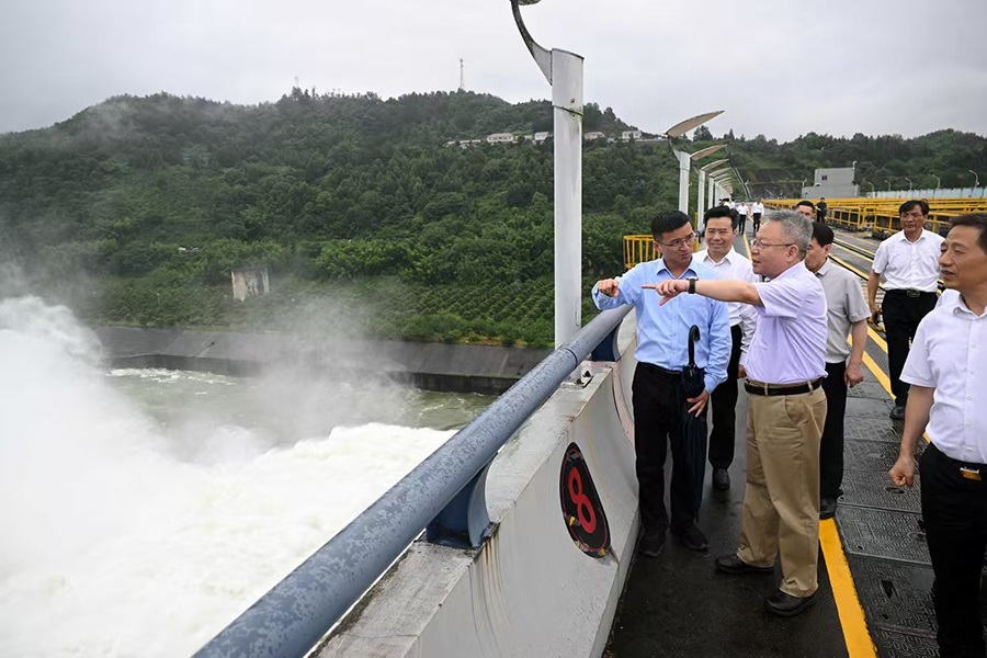 6月22日,沈晓明来到洪江市托口水库察看水库运行调度情况。