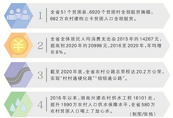 湖南地处罗霄山和武陵山两大集中连片特困地区,是全国脱贫攻坚任务最重的省份之一。摆脱贫困奔小康,曾是三湘儿女千百年来的朴素梦想。