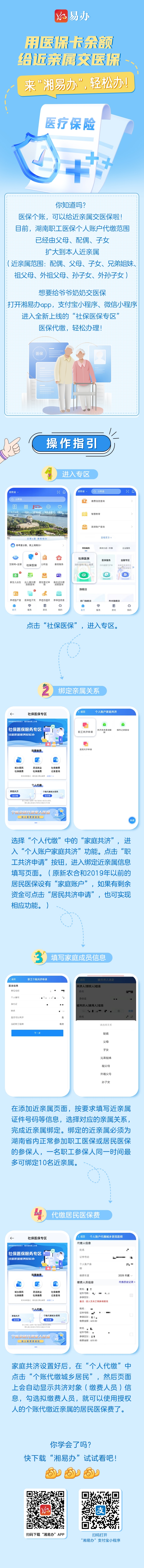 用医保卡余额给近亲属交医保来“湘易办”,轻松办!