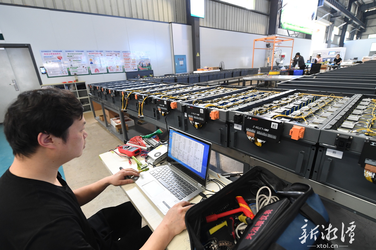 经过“十四五”的精准招商和精心培育,湘潭综保区主要产业塑形成势,形成以西来客、艾德迅等为代表的新能源储能制造产业链。图为西来客生产车间(本报记者 陈旭东 摄)