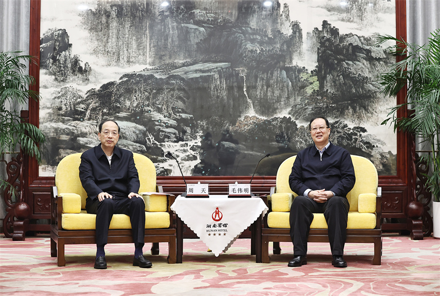 毛伟明感谢国家消防救援局长期以来对湖南的大力支持并简要介绍湖南消防救援工作。他说,近年来,湖南扎实开展安全守底行动和治本攻坚三年行动,积极防范化解重大消防安全风险,有效应对处置各类灾害事故,消防安全形势持续平稳,应急救援能力明显提升,公共消防基础更加稳固。全省连续多年没有发生重大以上亡人火灾事故,重大火灾隐患排查率、整改率连续5年居全国前列。毛伟明表示,消防救援工作是统筹发展和安全的关键一环,是实现经济社会高质量发展的重要保障。希望国家消防救援局一如既往关心湖南,在推动应急装备制造产业发展、消防基础设施建设、消防救援队伍建设等方面给予更多指导支持,助力湖南不断提升消防本质安全水平,更好护航经济社会高质量发展和人民群众高品质生活。