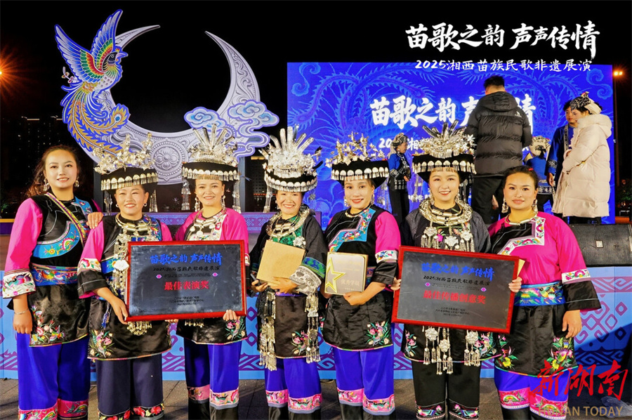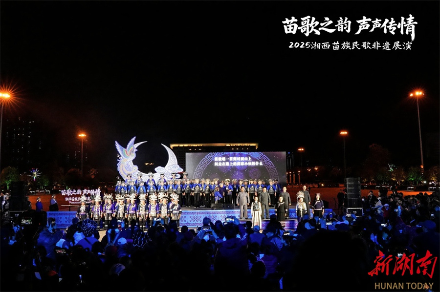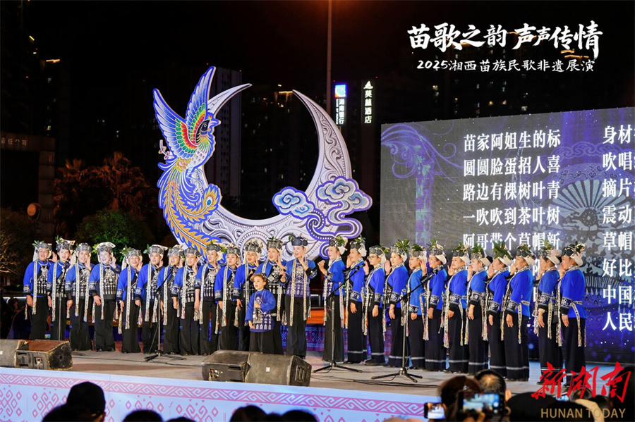 灯光渐暗,人群缓缓散去,但那悠扬的旋律,似乎仍盘旋在夜空。湘西苗族民歌从历史的深处走来,穿越歌师飞扬的眉宇、学员专注的目光,淌过舞台交织的声光,最终流入聆听者的耳中与心间,也必将传向远方的每一次回响。