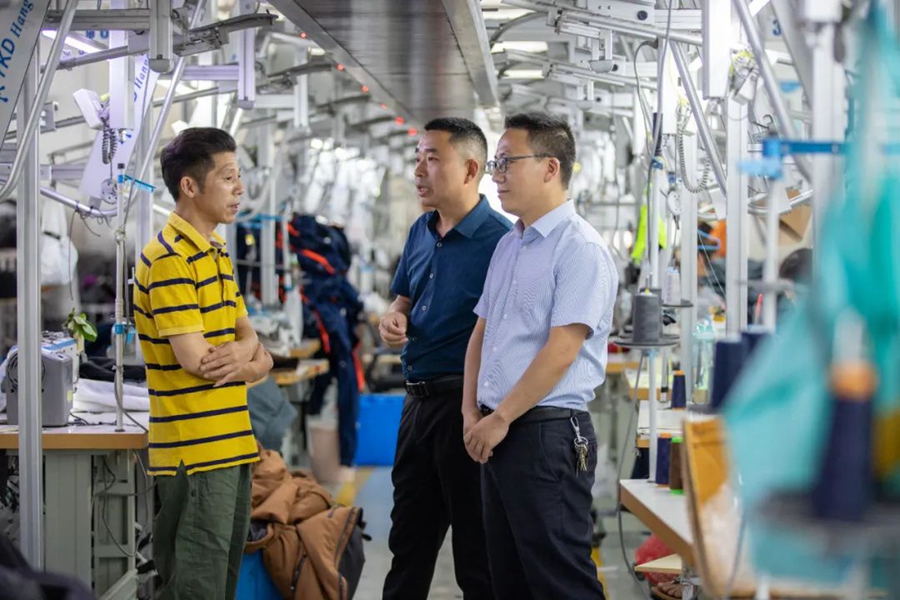 2022年6月16日,龙山县产业开发区,党员干部深入园区企业了解生产销售情况。彭舟 摄