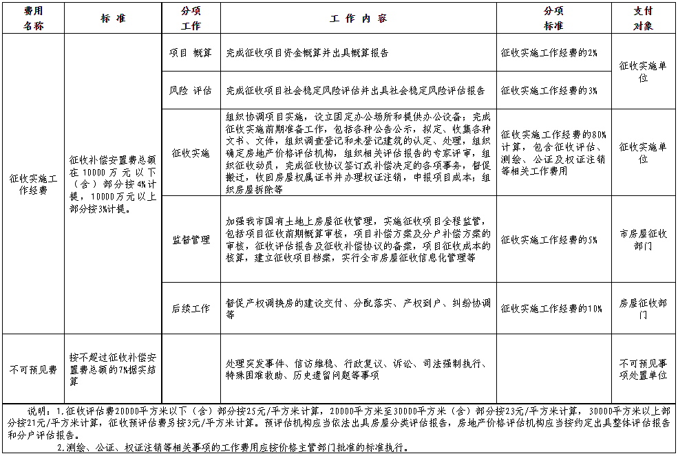 征收工作中发生的下列费用在征收项目中列支,纳入征收项目总成本核算。